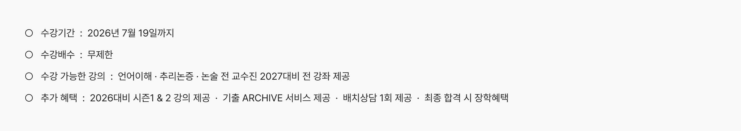- 2026 대비 강좌는 시즌 1, 시즌 2 에 한정하여 제공합니다.