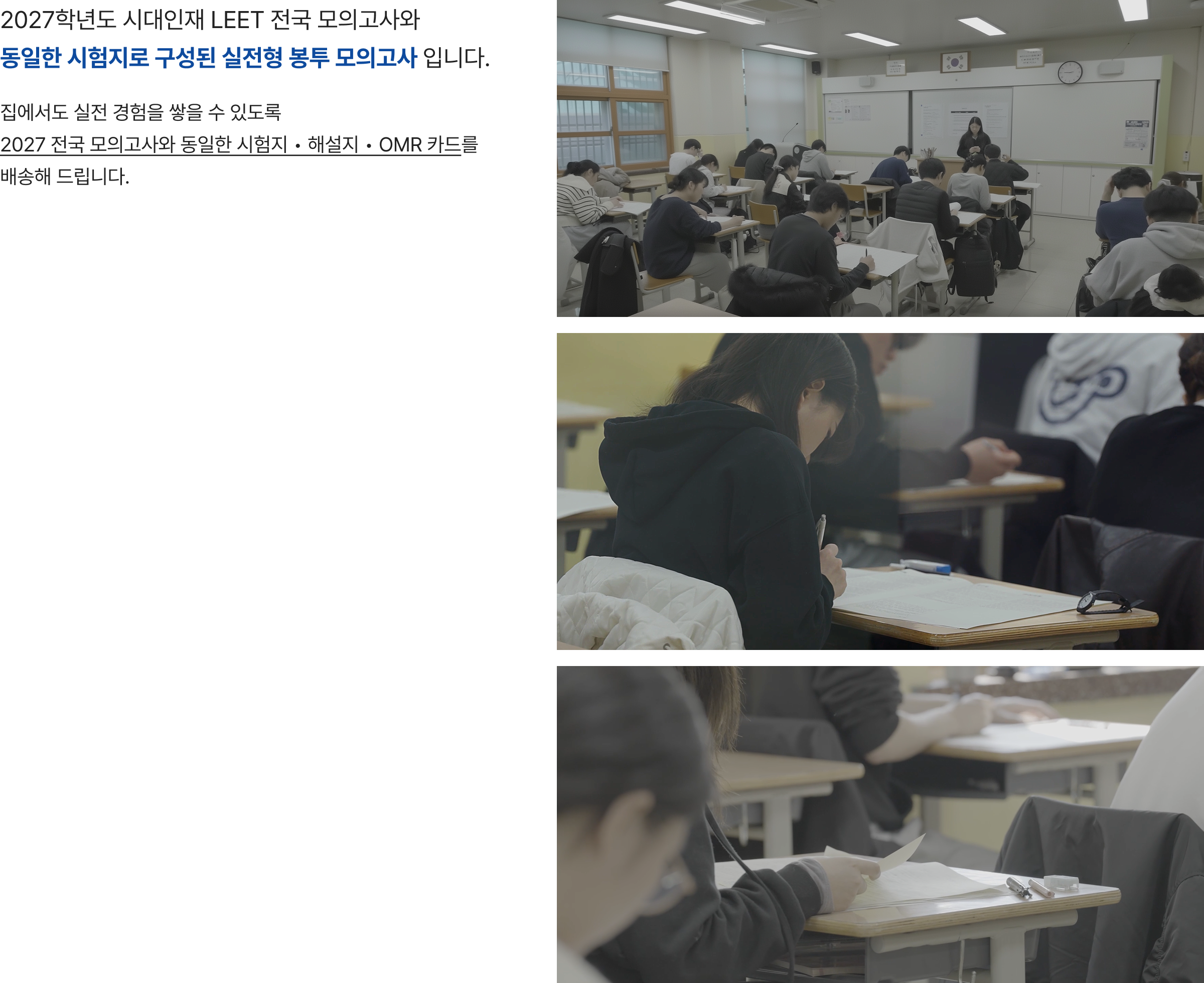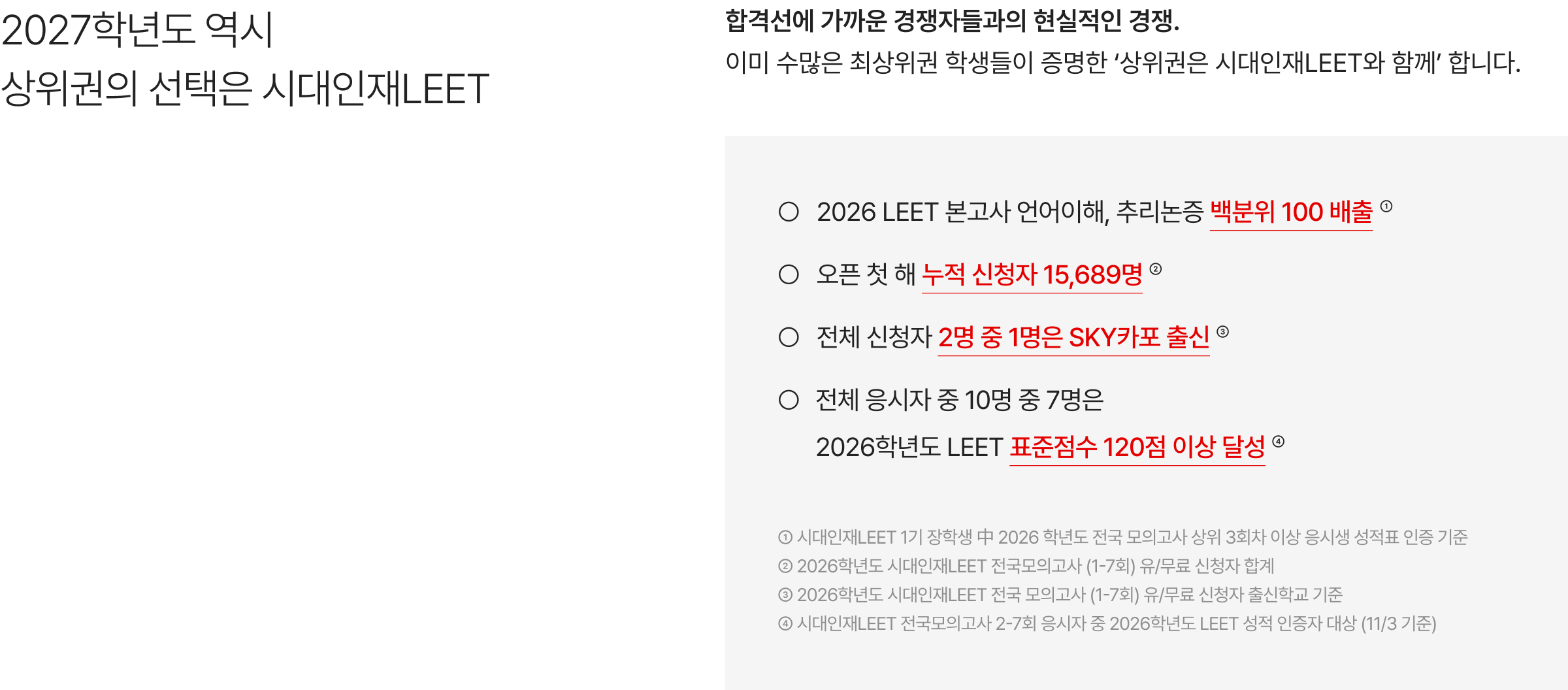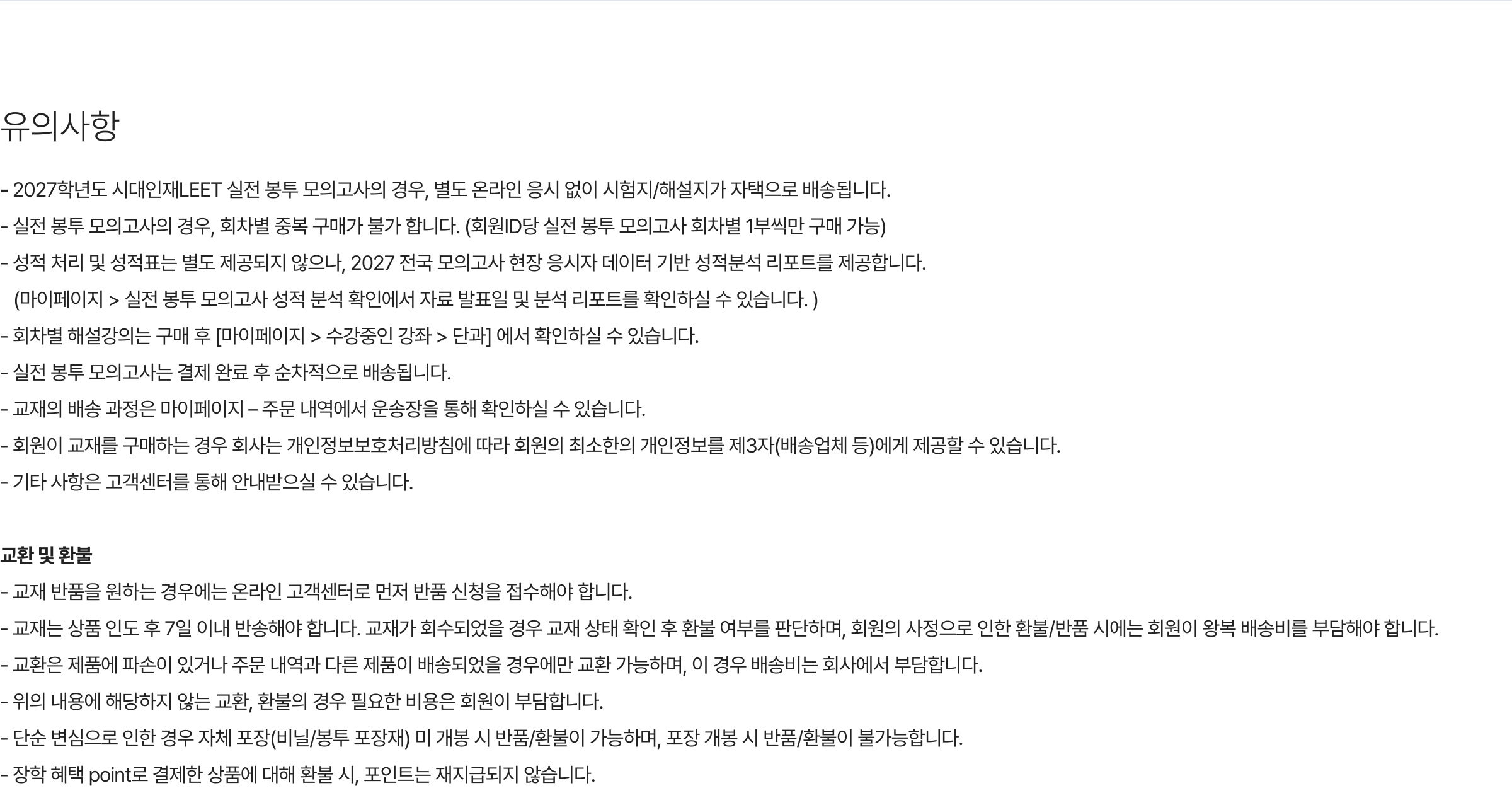 시대인재LEET는 (이하 ‘회사’는) “정보통신망 이용촉진 및 정보보호”에 관한 법률을 준수하고 있습니다.