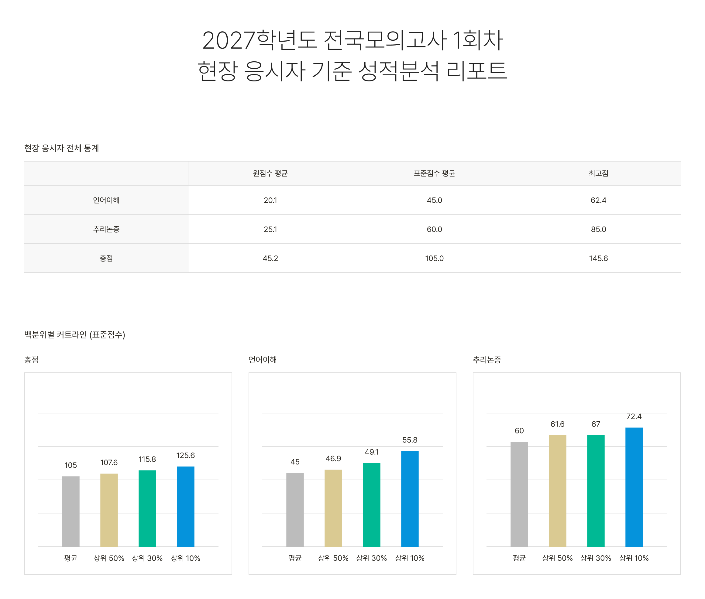 전국 모의고사와 동일한 문항을 통한 허수 없는 상위권과의 경쟁