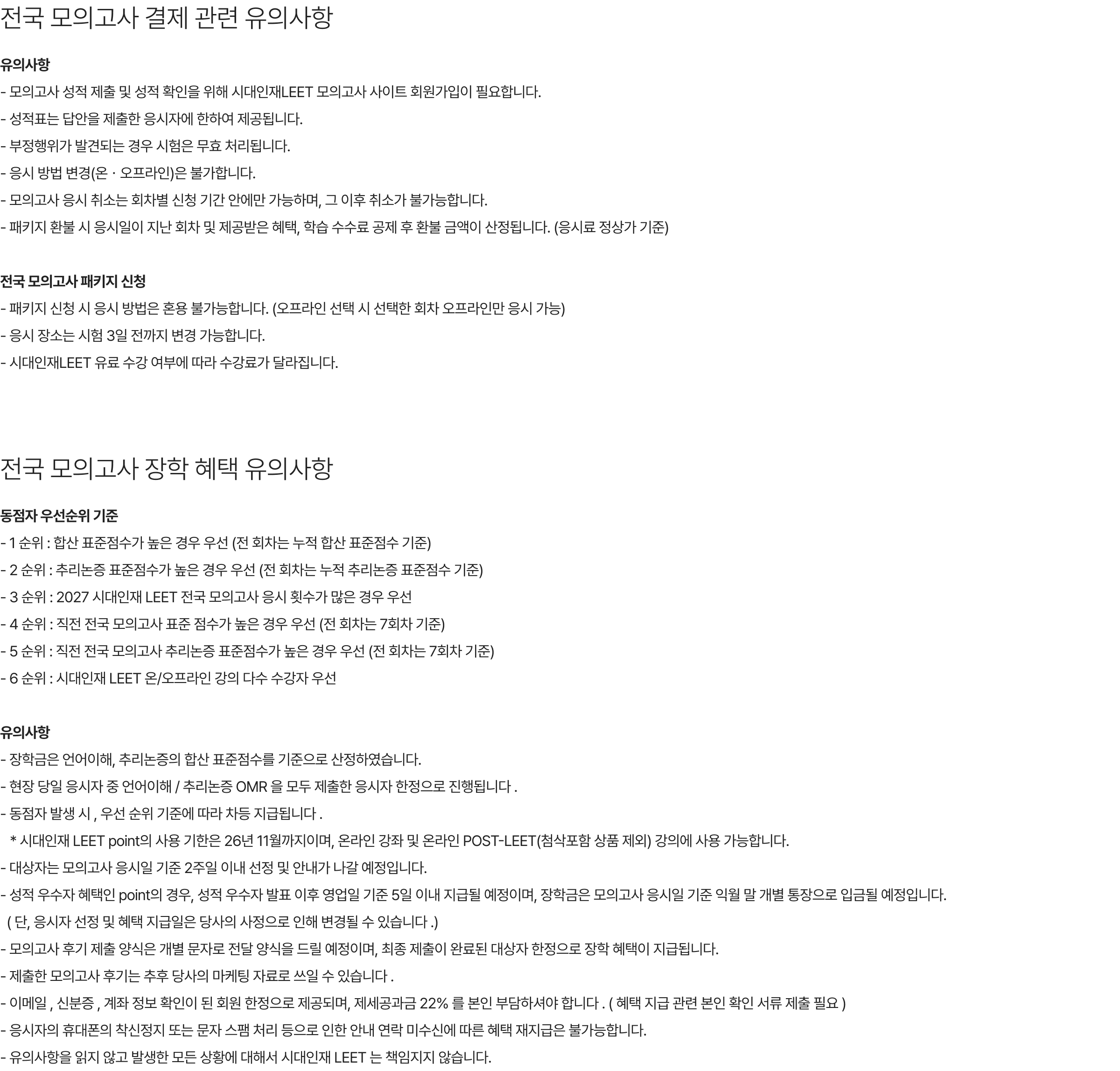 시대인재LEET는 (이하 ‘회사’는) “정보통신망 이용촉진 및 정보보호”에 관한 법률을 준수하고 있습니다.