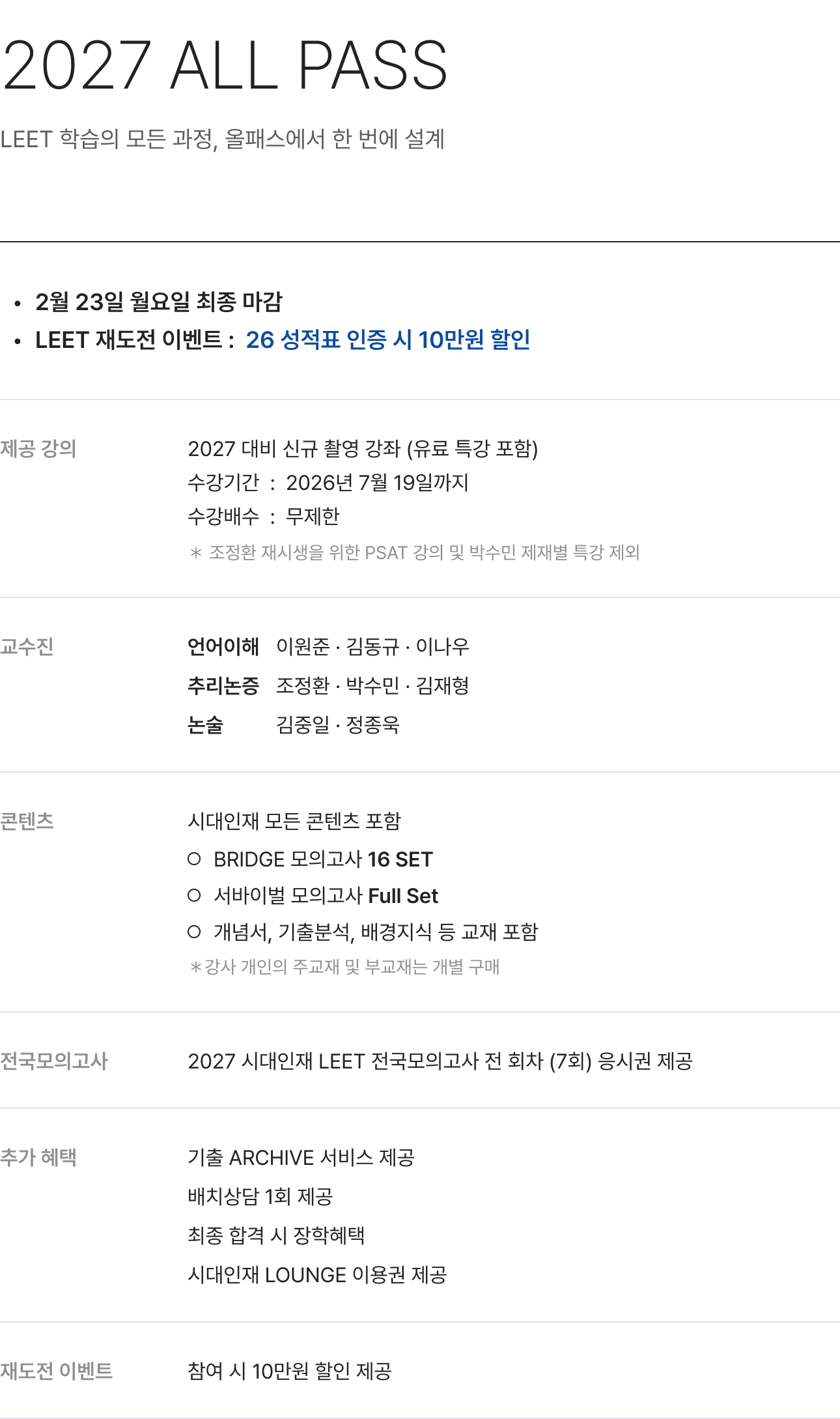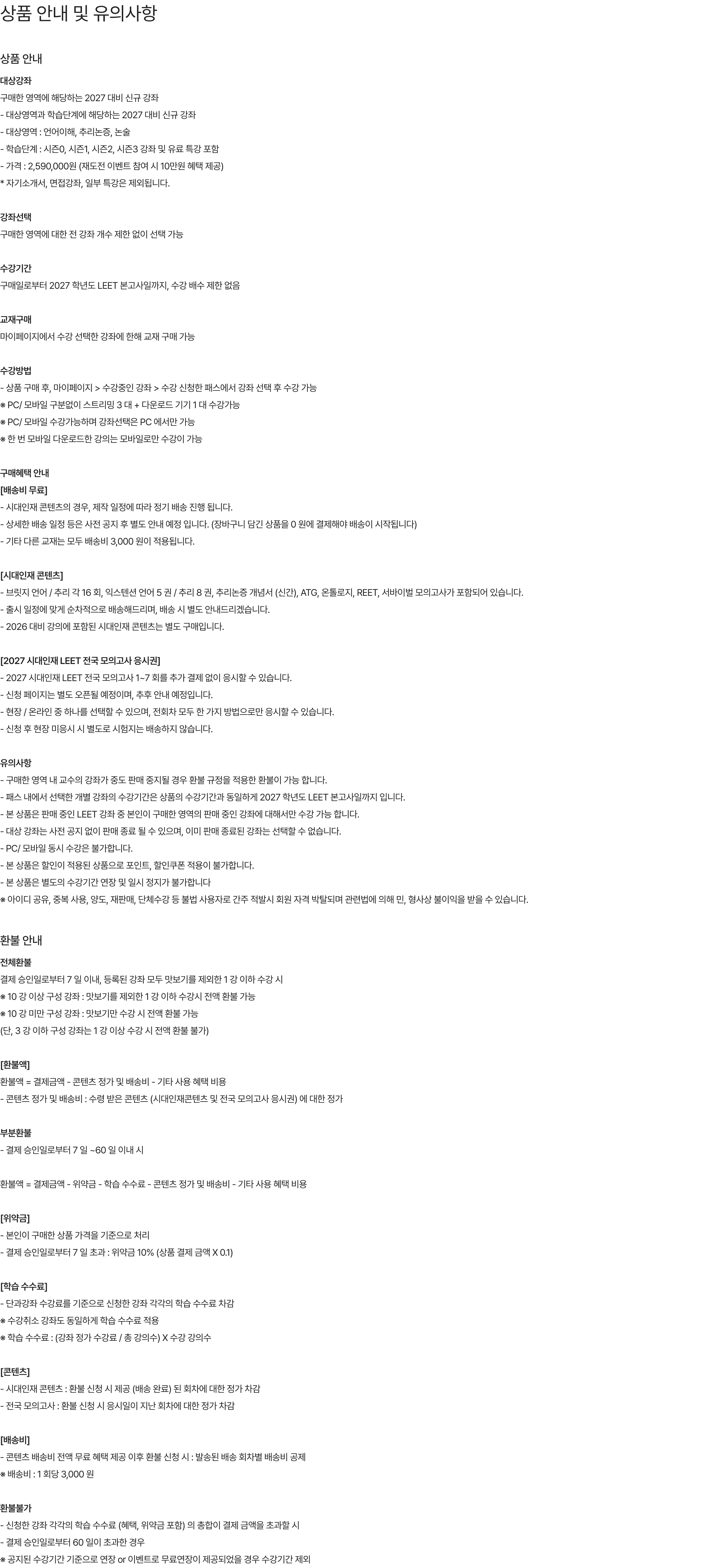 시대인재LEET는 (이하 ‘회사’는) “정보통신망 이용촉진 및 정보보호”에 관한 법률을 준수하고 있습니다.