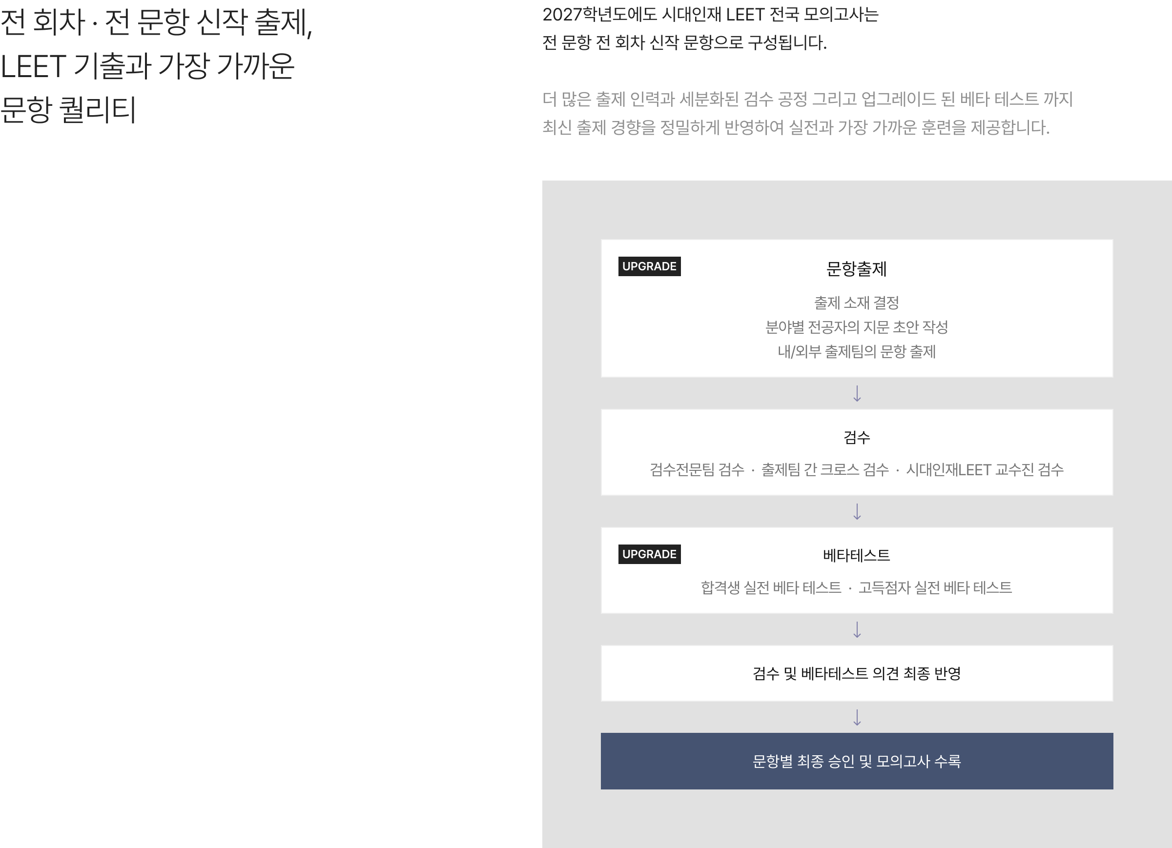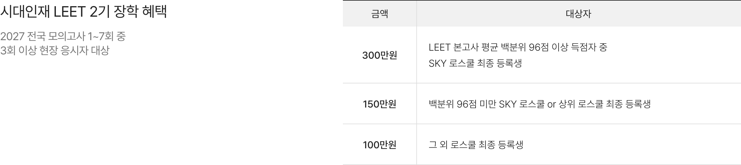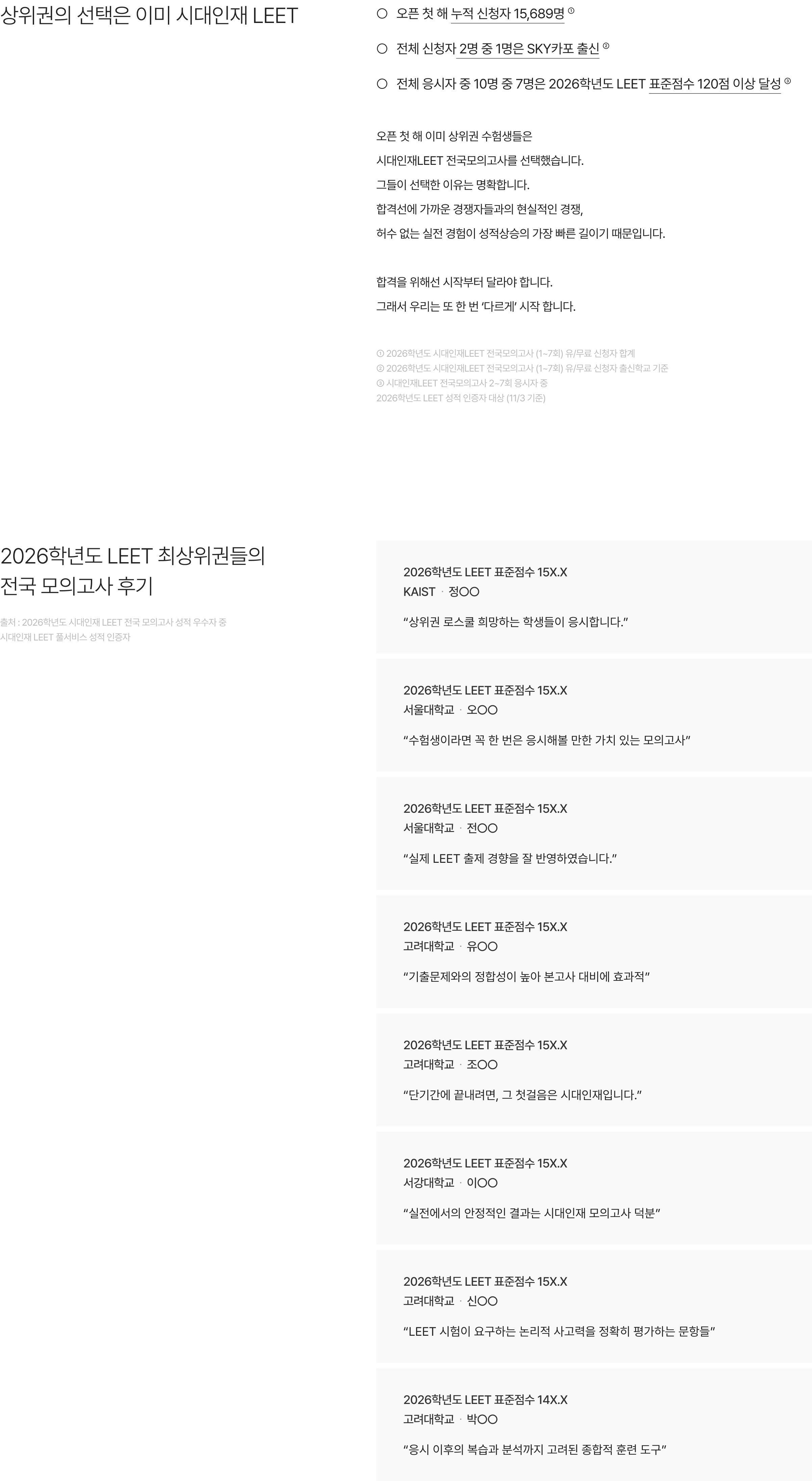 시대인재LEET는 (이하 ‘회사’는) “정보통신망 이용촉진 및 정보보호”에 관한 법률을 준수하고 있습니다.