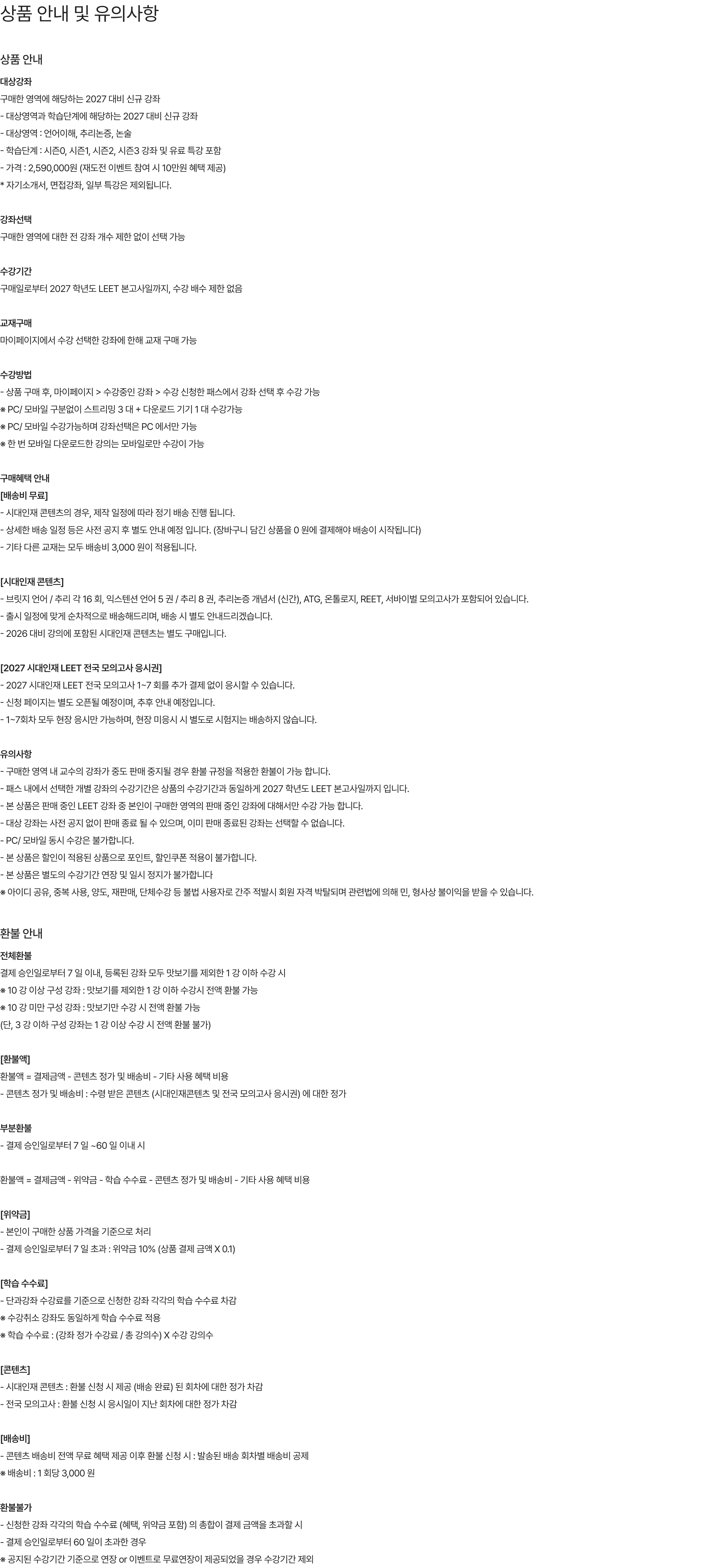 시대인재LEET는 (이하 ‘회사’는) “정보통신망 이용촉진 및 정보보호”에 관한 법률을 준수하고 있습니다.